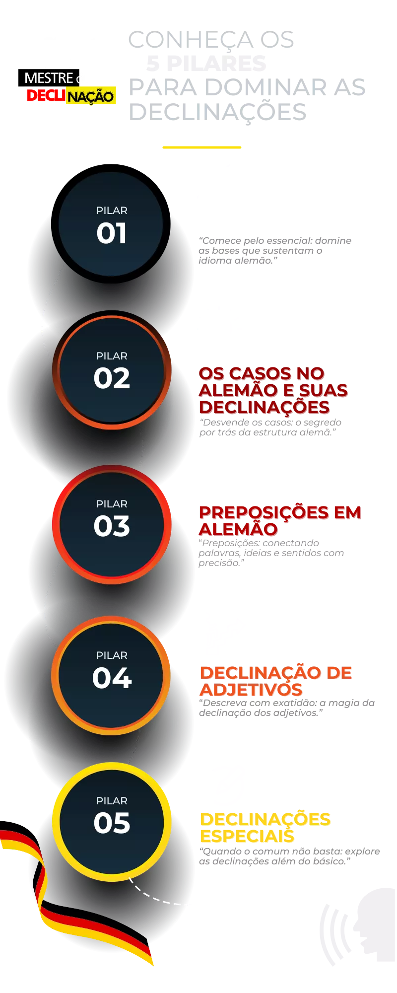 O Curso Mestre da Declinação é destinado aos alunos que querem aprender de forma fácil, prática e rápida as declinações em alemão e obter a fluência em alemão em tempo recorde.